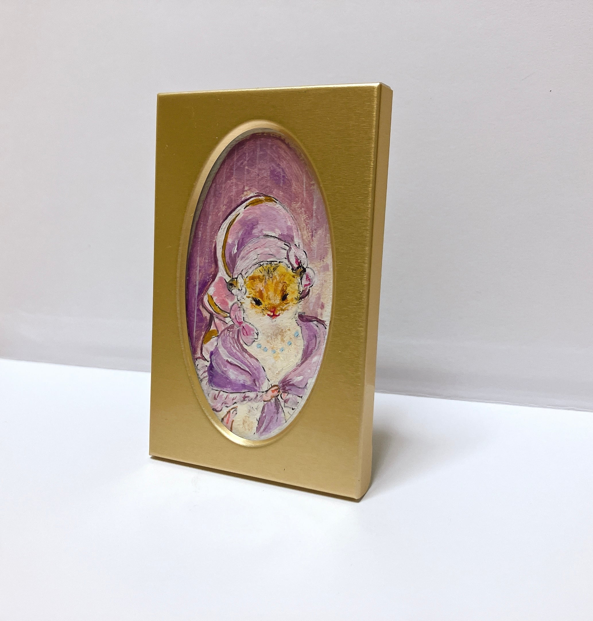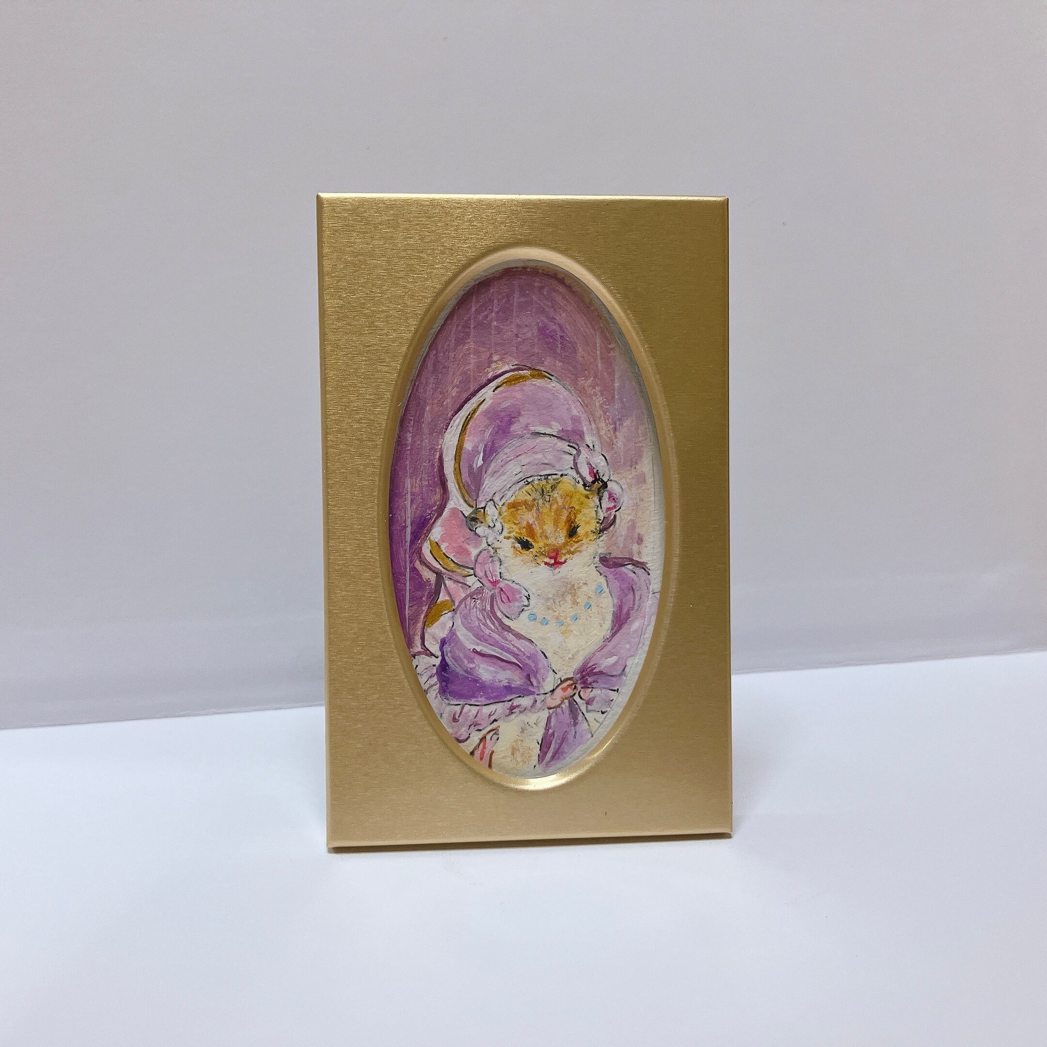 簡易額縁つきのゴールデンハムスターの貴婦人ミニ肖像画です。