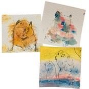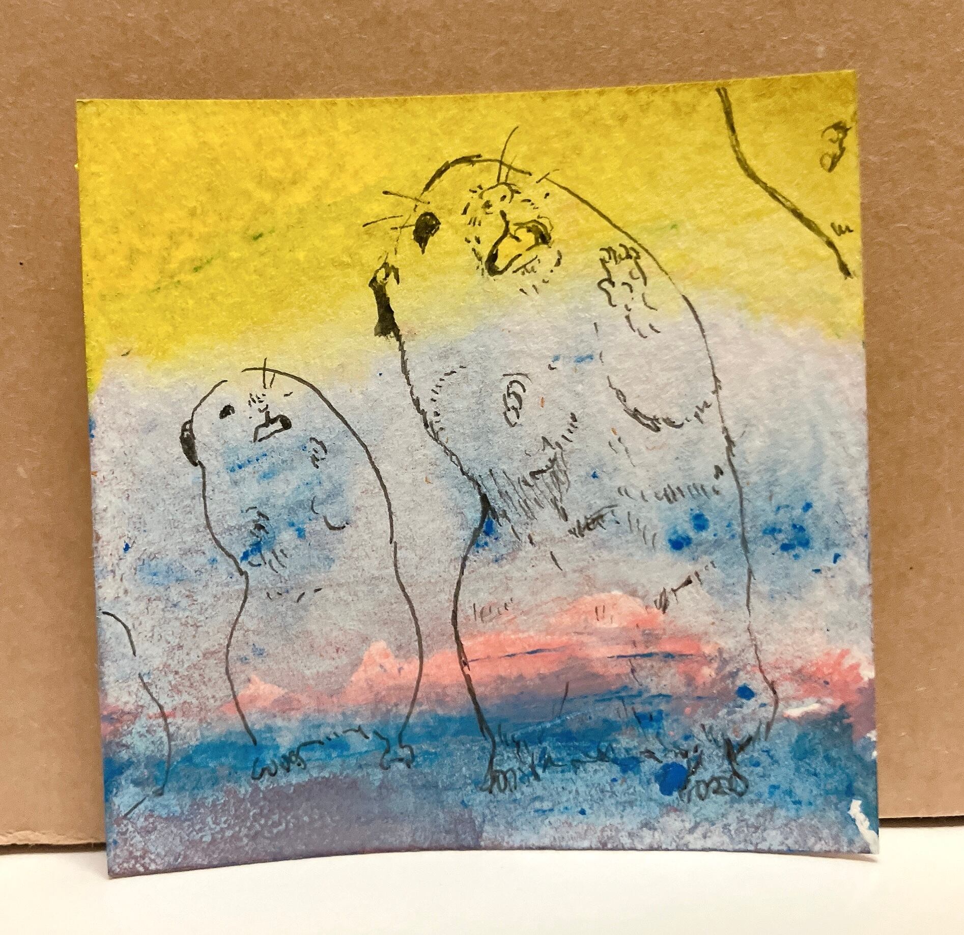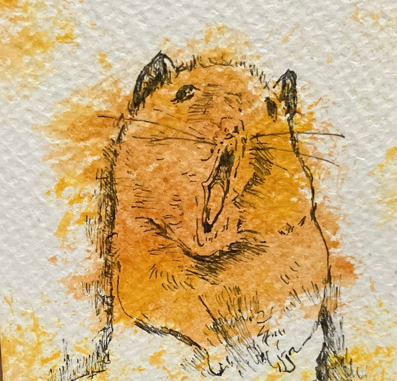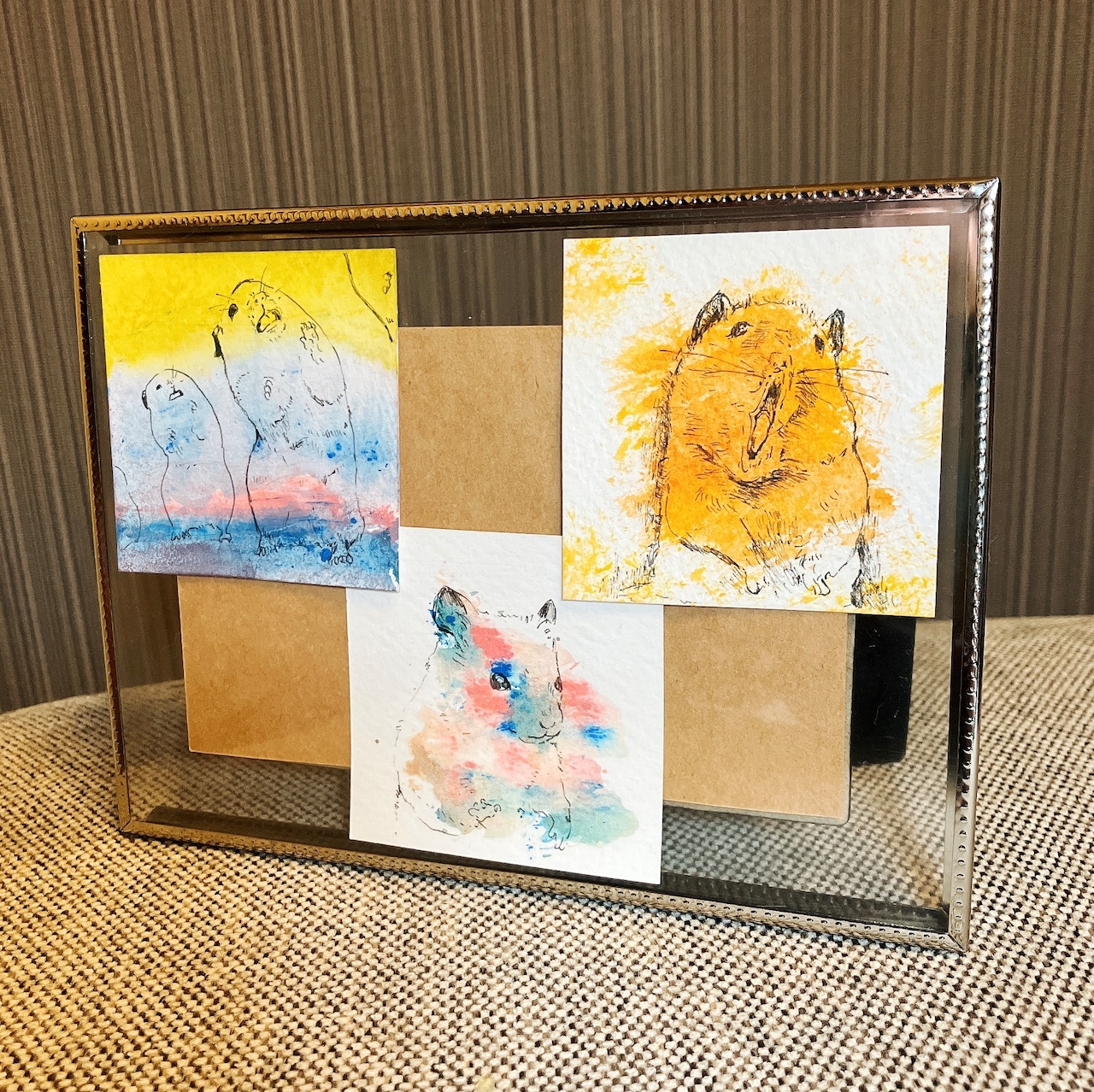 豊かな表情のゴールデンハムスターぼーろ氏と、表情の雰囲気から連想するカラーを組み合わせました。簡易額つきです。